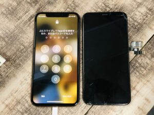 本日は、落としてしまった衝撃で液晶が真っ暗になってしまった iPhoneXsの修理を承りました!