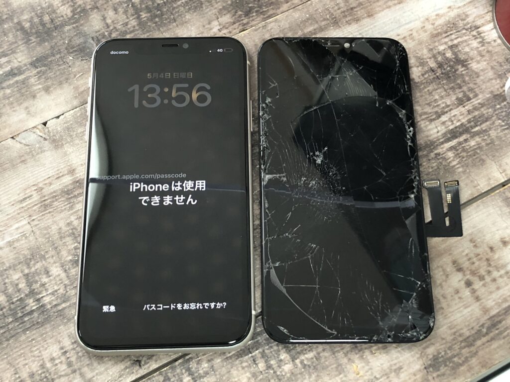 今回の事例では、液晶破損中にゴーストタッチでパスコードが誤入力され、修理後に「iPhoneは使用できません」と表示されたケースでした。