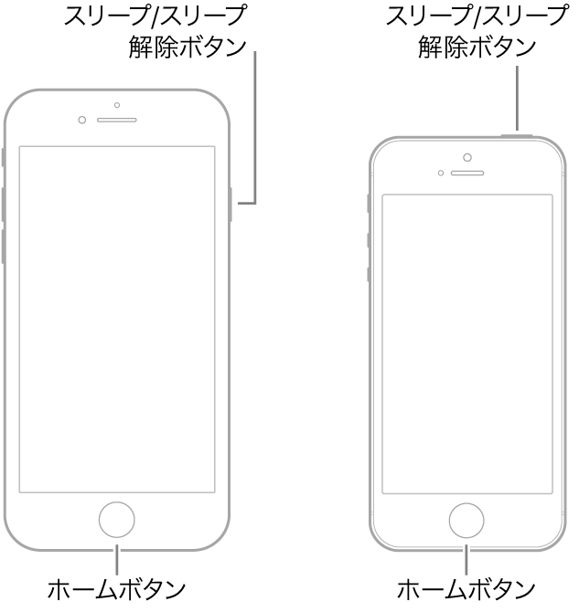 - スリープ/スリープ解除ボタンとホームボタンの両方を押さえたままにします。