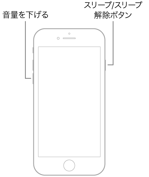 - 音量を下げるボタンとスリープ/スリープ解除ボタンの両方を押さえたままにします。