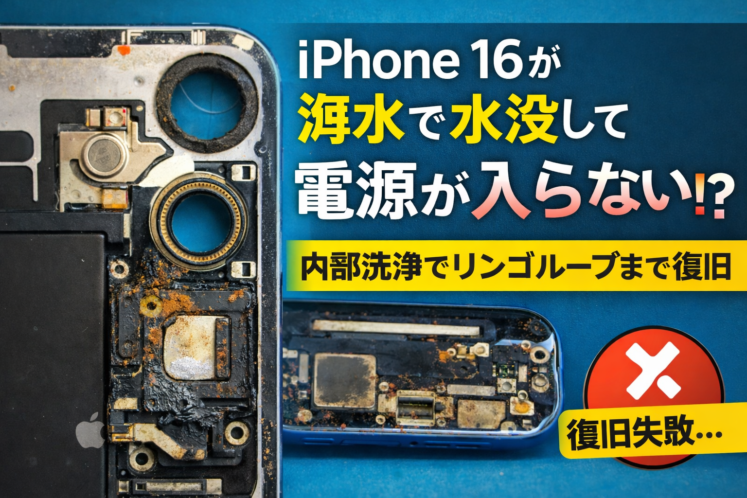 iPhone 16が海水で水没して電源が入らない|内部洗浄でリンゴループまで回復した事例