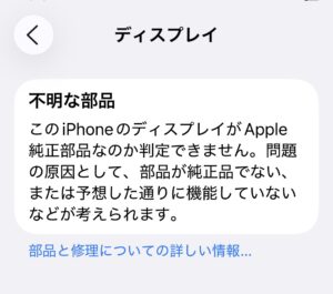 - iPhone11以降のフロントパネル交換後、警告文がポップアップで表示され「不明な部品」と表示されます。